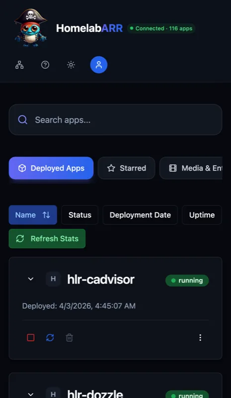 Check on your homelab from your phone. Same dashboard, native app. Available on iOS and Android.