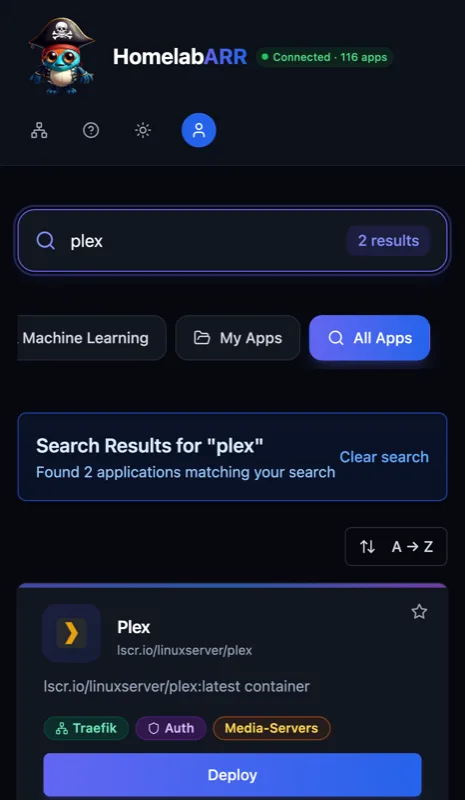 100+ Docker apps you can deploy in one click. Plex, Sonarr, Radarr, Ollama, and everything else. Free and open source.